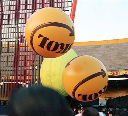 As they are normally 1-1.5m diameter we can inflate many units in the space of an hour ready to throw into the crowd.