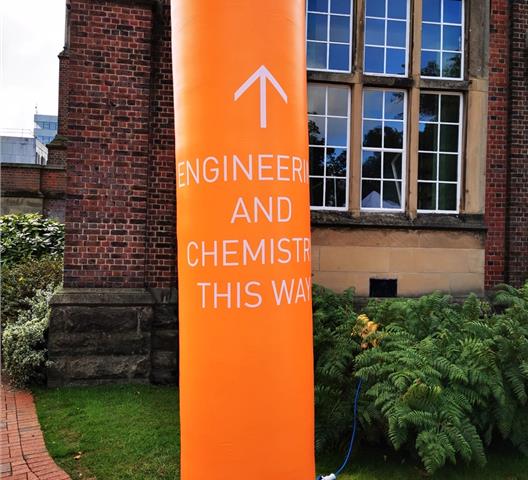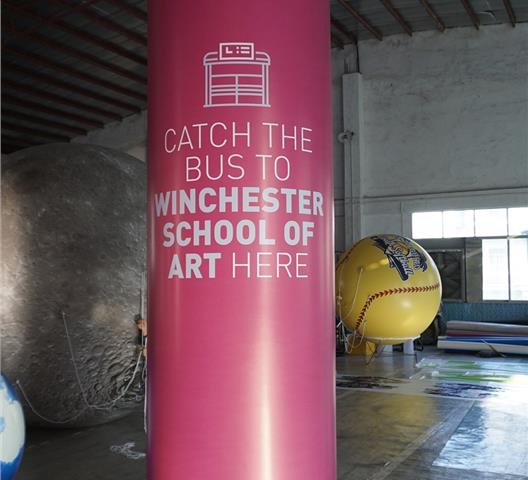 Usually 3m h x 83cm diameter, we can pantone match these, add text or logos and lights. Excellent as a directional tool to point you to the right place or "tag" a location.