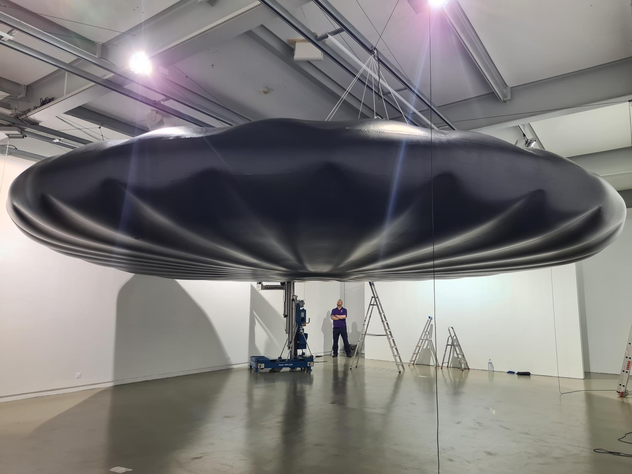 9m matt black PVC cold air sealed flying saucer for our client in Portugal.