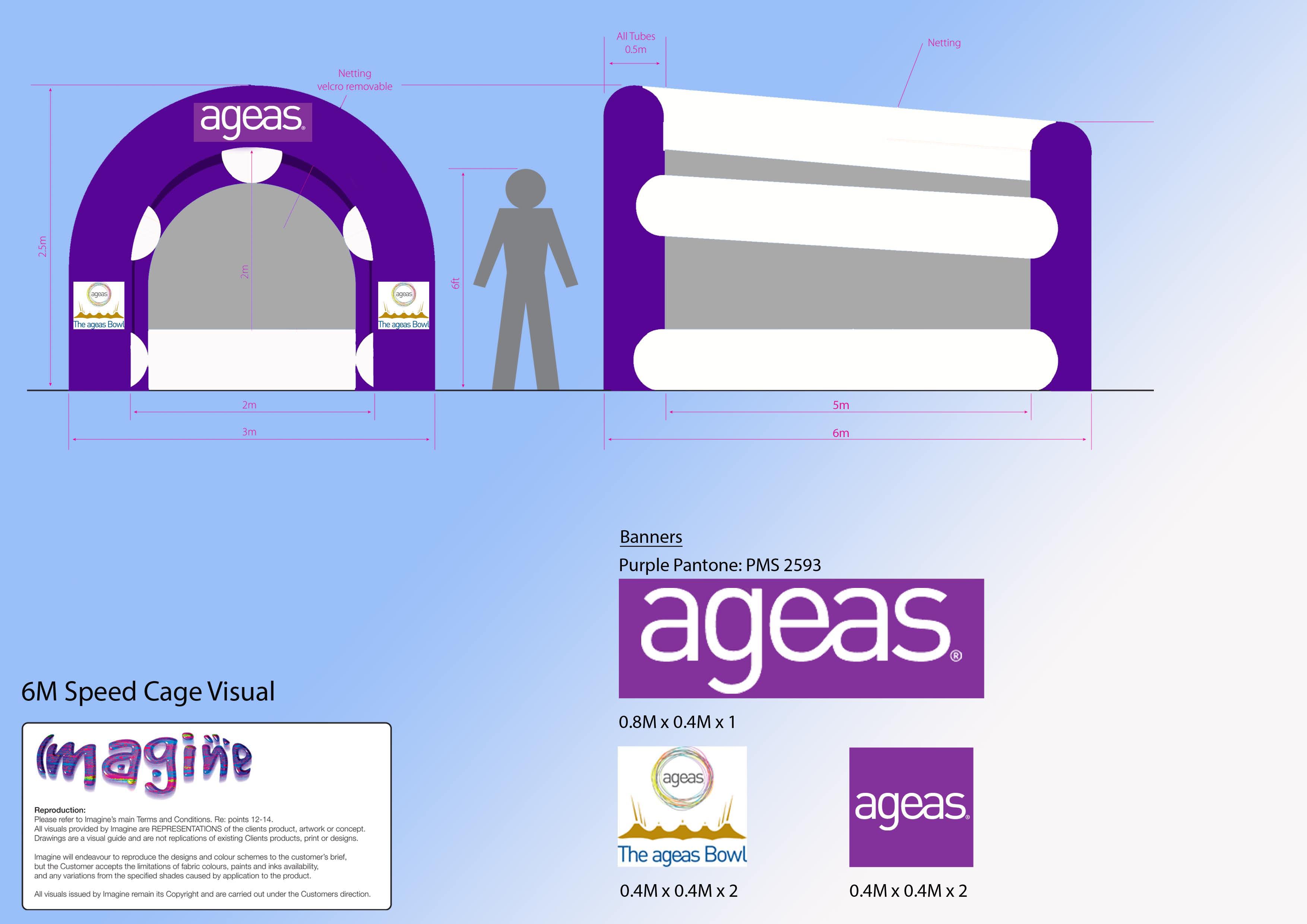Jennys latest project was to design and manufacture a 6M Long Speed Cage to be used at the Ageas Bowl Cricket event for speed bowling that was aired on TV!This Cold Air Filled Sports Inflatable has been a success being used at this sporting event.