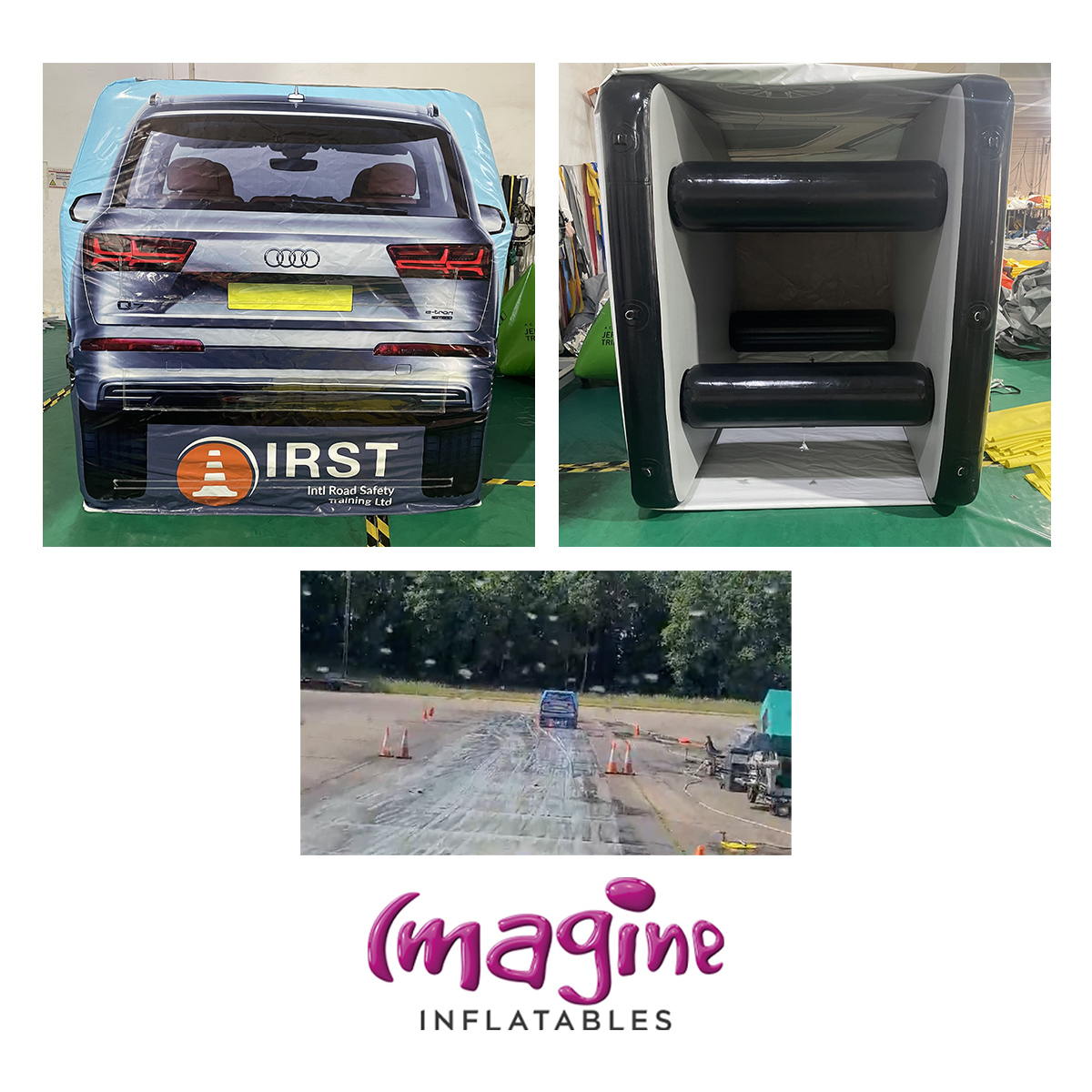 Our NCAP design test target inflatable has come in handy once again for crash test training. This Audi Q7 representation is a really hard wearing reinforced microfilament tarpaulin , an inner beamed structure with a printed outer sleeve to represent the rear and sides of the Q7 car.