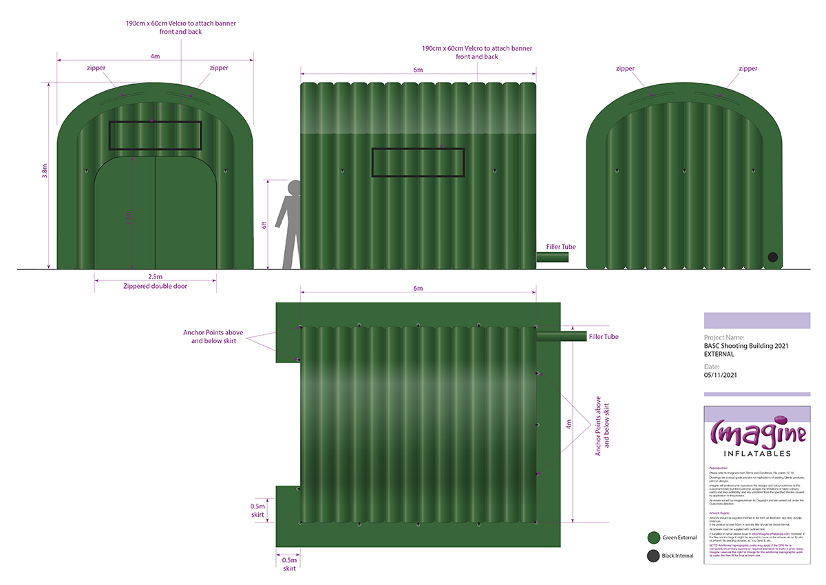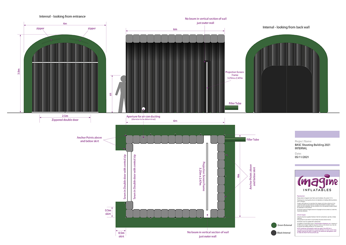 Basically, a redesign of an existing clients original building we made for them nearly 10 years ago, so this shows our buildings are of the best quality!!! The redesign included a lower roof and a change to a curved roof from an apex roof. We have also included now air con ducting holes to allow the building to be cooled down in summer months. The client has a large screen that will sit inside the actual wall cavity we have created for it. The user will then enter the tunnel and immerse themselves in a virtual reality screen experience with moving targets for shooting.