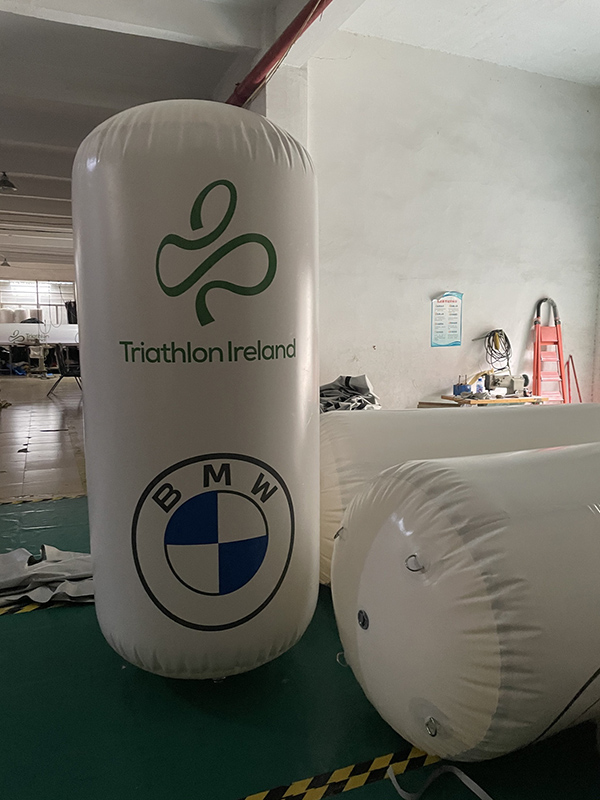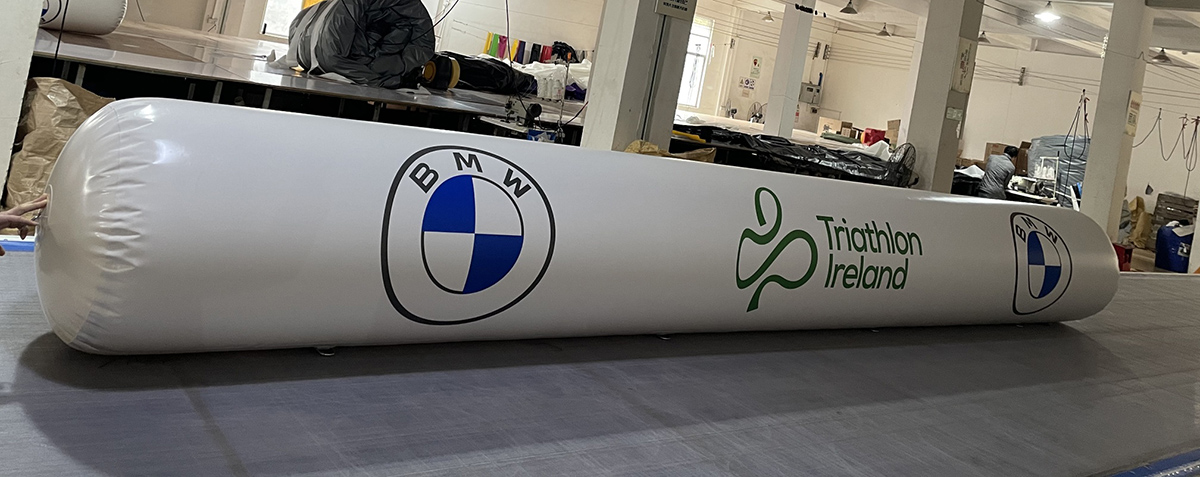 Imagine has produced some heavy duty water booms and cylinder buoys in preparation for the new triathlon season, in partnership with BMW and Triathlon Ireland. The buoys and booms are made from really strong 0.60mm welded PVC tarpaulin ideal for open water venues in chilly and choppy UK lakes and seas.