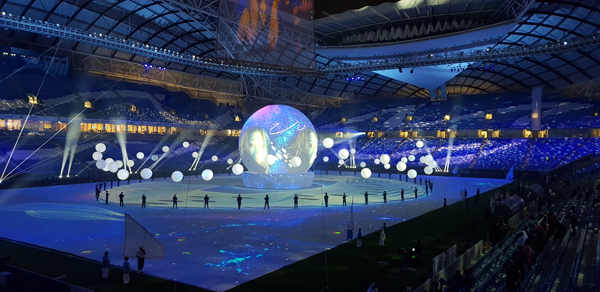 Following on from our success at the Sochi Winter Olympics we designed the working prototype for the giant 15m diameter central Sphere with hanging skirt.