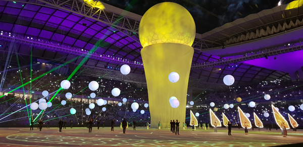 Imagine’s crew travelled out to Qatar to assist in the training of the dancers and to manage the helium gas delivery, supply and use within the stadium.