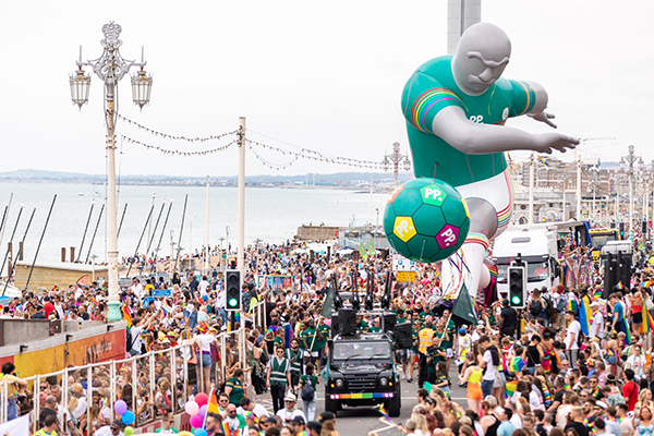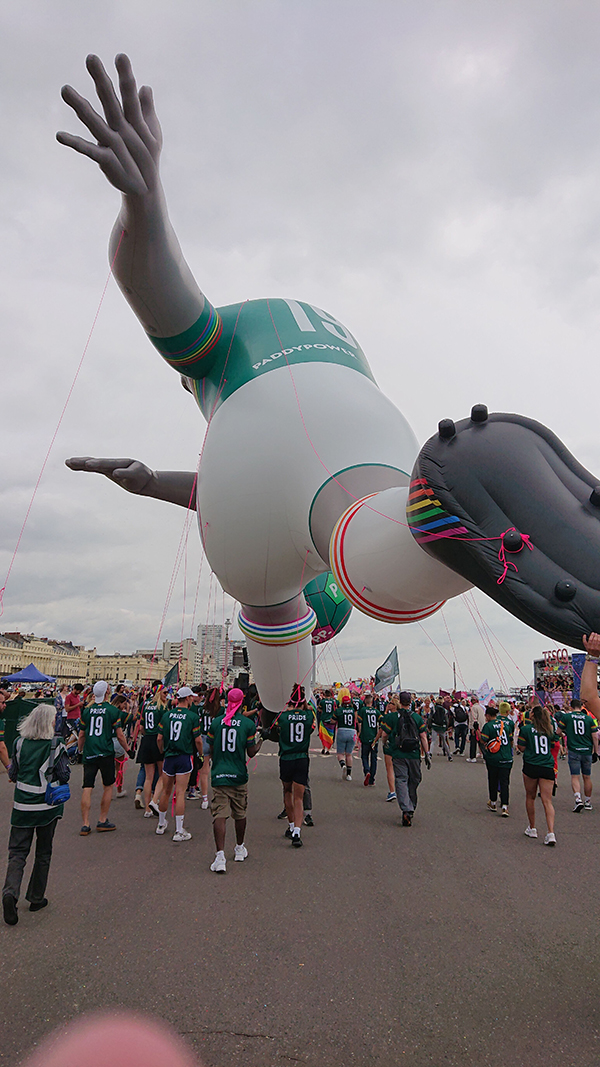 It is one of the largest helium inflatables we have done for a parade in the UK so far and was certainly the largest inflatable at the pride event! It got lots of attention on the day and people were partying around us as we paraded it down the streets of Brighton so all in all a great fun day for all involved.