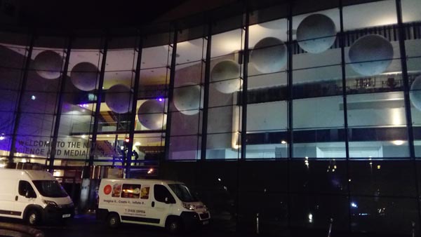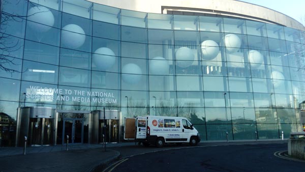Imagine installed some inflatable spheres that were filled with helium so they could float for a window display at The National Science & Media Museum in Bradford.