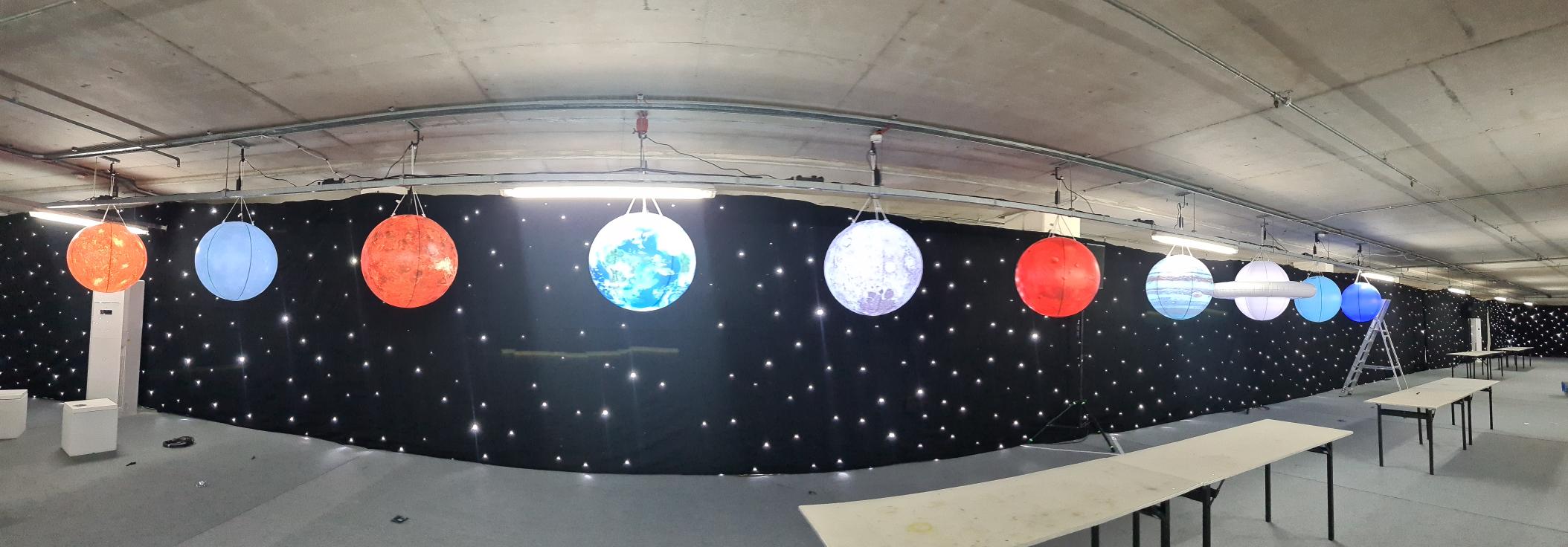 Categories: General Posted: Monday, 9 May 2022 Planets at Sofitel hotel These 80cm dia planets were installed at the Sofitel Heathrow hotel over the weekend for the SaKo Expo. These have 30W mains power LED lights inside with a remote control for changing the colour. Send Enquiry