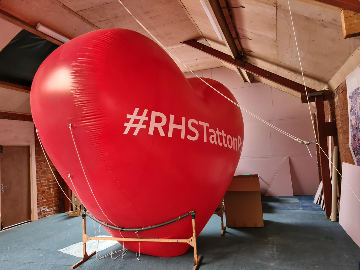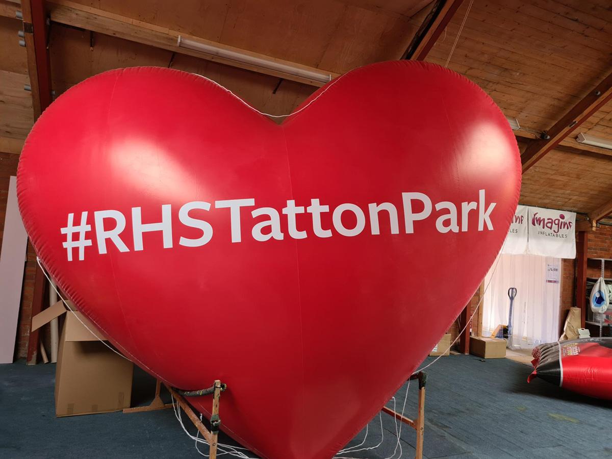 We will be at RHS Tatton Park Flower Show next week from 21 – 25 July, flying this beautiful big heart above the showground. Its 4m wide and can fly at up to 100ft, location permitting. Items like this are not aerodynamic so require constant supervision but you can rely on our guys to do all that for you while you concentrate on the other elements of your event.
