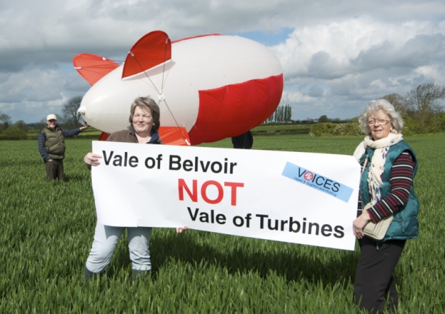 This Rental Site Marker Blimp was for 'Voices against Turbines' and was flown at a proposed wind turbine site near Melton Mowbray.