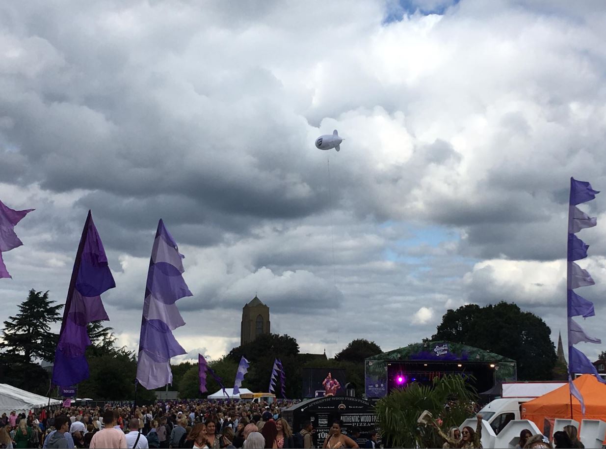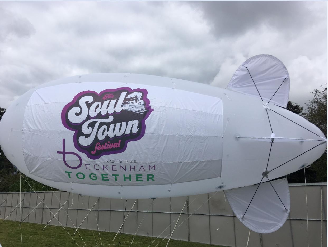 Categories: General Posted: Tuesday, 8 October 2019 Soul Town Festival We were asked to assist with the Soul Town Festival in Beckenham by providing a blimp for advertising to event. We set up behind the main stage and had a fantastic time helping support the festival. As the blimp had to be flying past dusk we had to make sure we had a suitable power supply there so we could have it lit, which made for a great effect. Send Enquiry