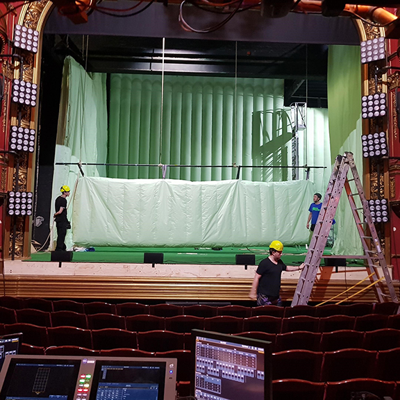 One of most recent special projects was for Stratford East Theatre in London. We were asked to create and design some inflatable walls to fit around the theatre stage space to look like a sports arena for one of their new shows call the Wolves.