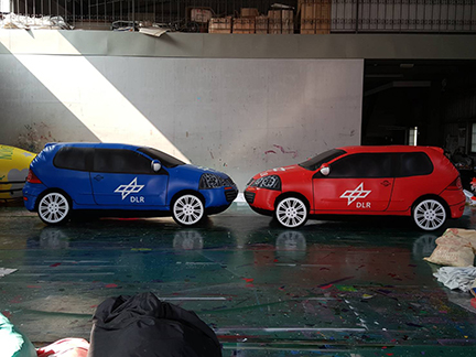 Our German client the German Aerospace Centre (DLR) is a government organisation responsible for transport systems. They used our VW Golf model for collision testing, hence both cars had separate front and rear bumpers in case of impact.