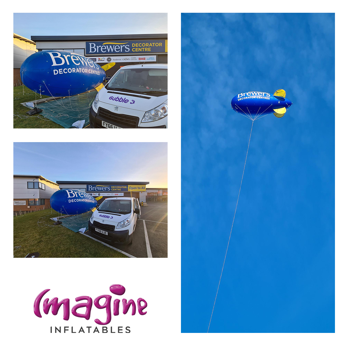 What a lovely crisp clear day to fly a blimp at Brewers Telford today. With Covid on the wane (hopefully), promotions are ramping up for the Spring. If you’ve had your inflatable in storage since lockdown, or you’d like to create a new one, give us a ring and we will be happy to assist you re-launch your brand, store or product.