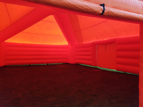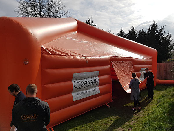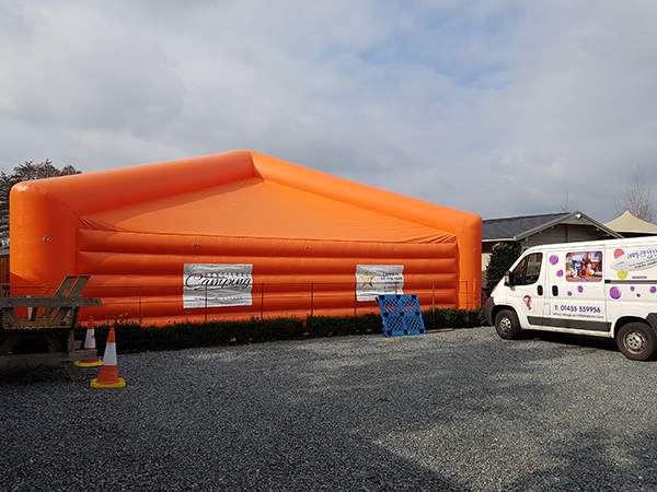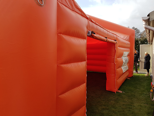 The building was 12x9m and was made from a bright orange tarpaulin material so it was fully waterproof and then we added some branding onto detachable banners.