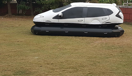 Our latest client is a car manufacturer, who wanted to utilise our inflatable moving target car for collision and sensor testing. The moving target comprises the upper part of the car, attached to a heavy duty “rib”, and then an overskirt wrapping all around to create the total car outline. The inflatable can then be pulled along as it is, or attached to a wheeled sledge. Branding can be applied to the upper part of the car as well as the skirt, and we offer a range of stock colours as well as pantone matching if desired. Radar pockets are placed at the front and rear headlights as well as the wheels, so that reflective shield material can be placed in them for the sensors to pick up.
