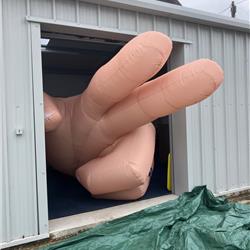 Bru-C is a Nottingham based rapper. His events team asked us to recreate his hands, tattoos and all, as a giant focal point front of stage for his UK tour which started on the south coast on 25th and 26th May. They are designed to be self supporting, with an internal fan in the base. Being lightweight nylon, they can be set up quickly and easily each night