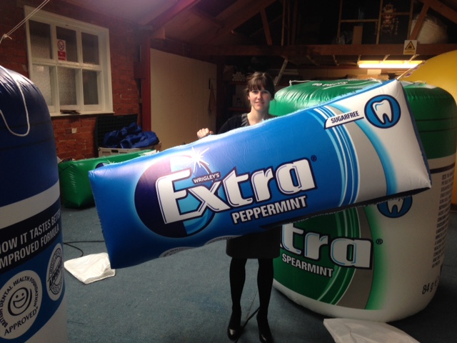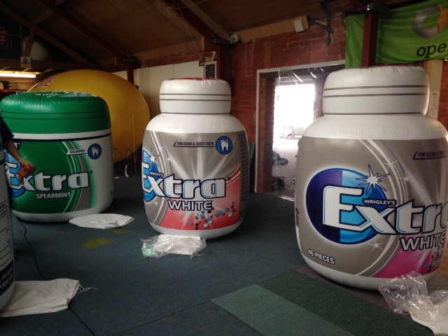 Categories: General Posted: Wednesday, 22 April 2015 Giant Inflatable packets and bottles for Wrigleys One of Jennys most recent projects was for our client 'Wrigleys'. We designed and manufactured eight different giant inflatable packets and bottles. These have been a big success and are a great way to promote new products! Send Enquiry