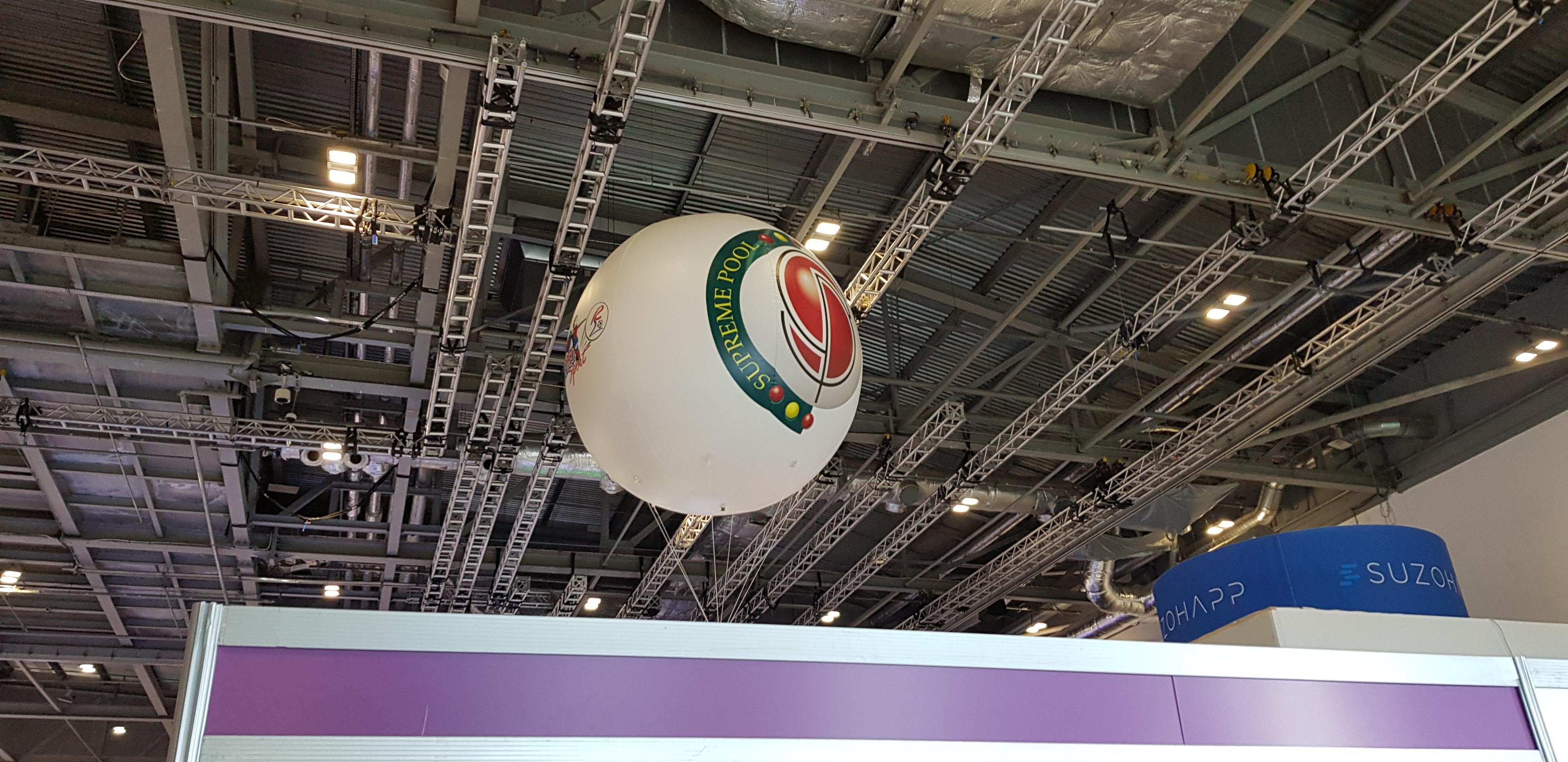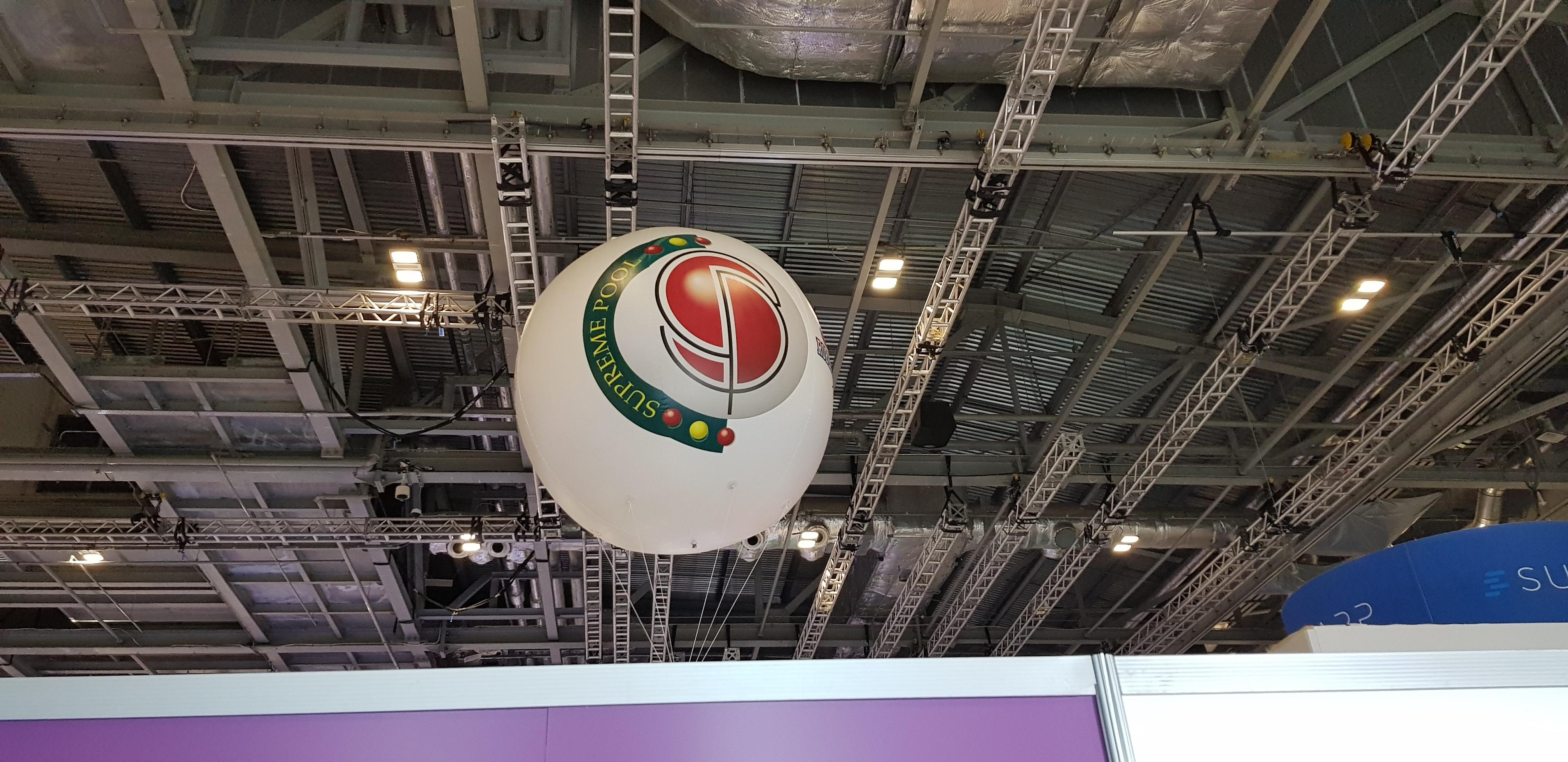 We were contacted last week to assist an old customer of ours with installing a sphere at the Excel this week. We sent our Ops Chief down to get it set up for the customer after testing the sphere for them and got it filled and placed to attract the most attention possible for the customer.