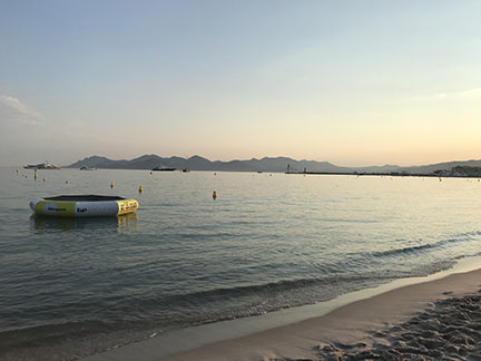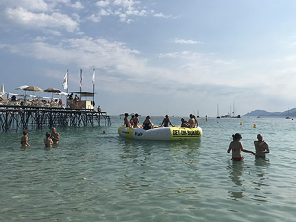 The trampoline was placed in the harbour at La Croisette Beach where there is a heavy through flow of festival goers.