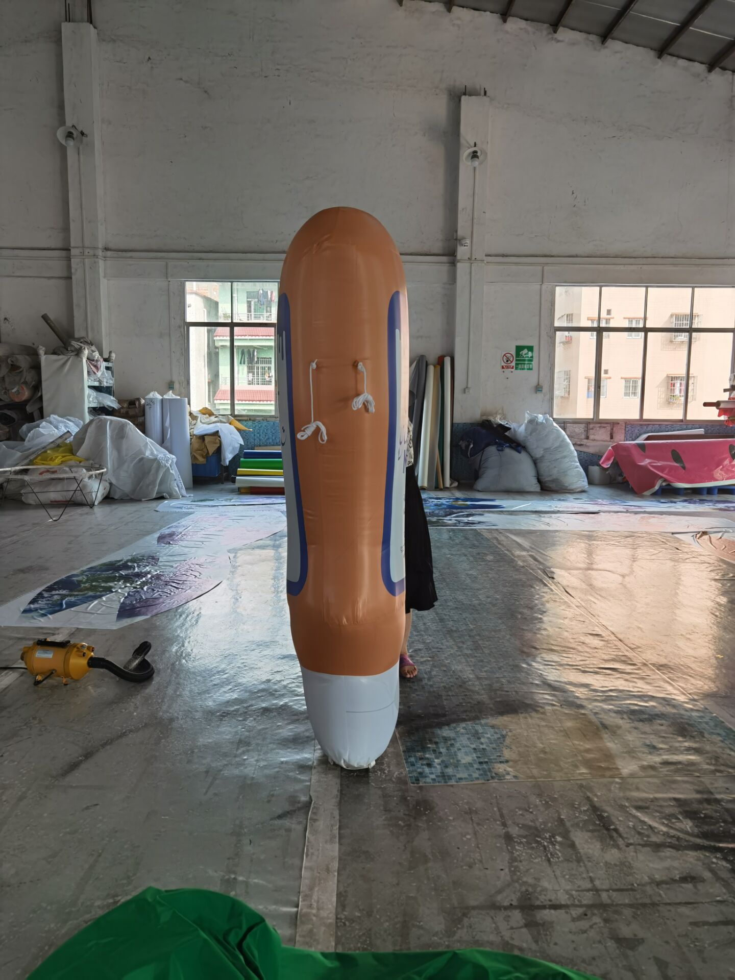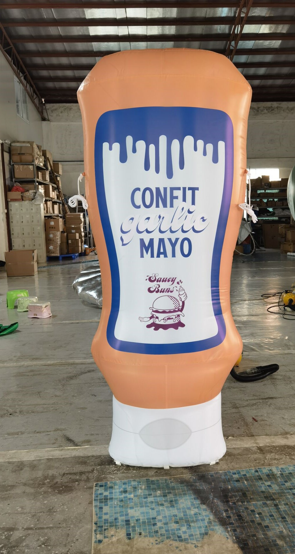 Categories: General Posted: Friday, 29 April 2022 Mayo bottle We recently created this giant mayo bottle for a French client. It had a Nylon printed outer layer and inner PVC bladder. Anchor points were added to the sides for stability. Send Enquiry