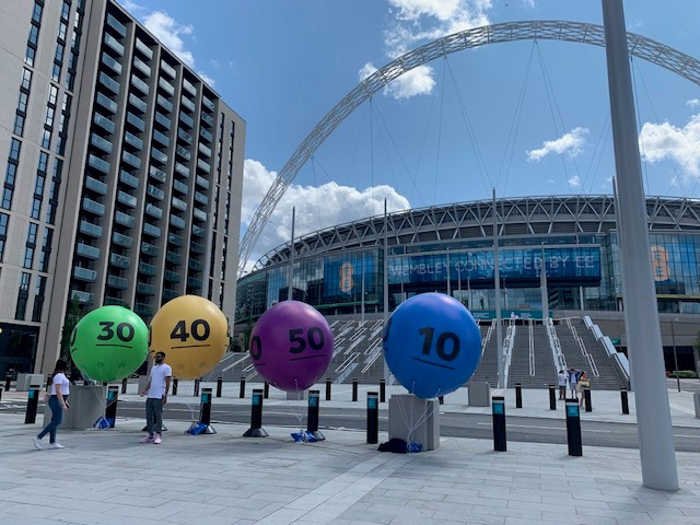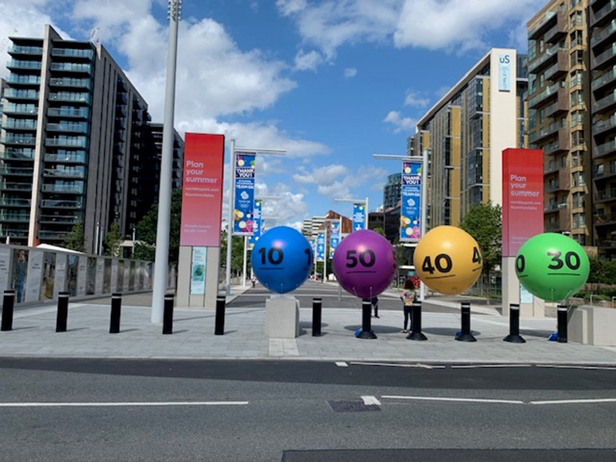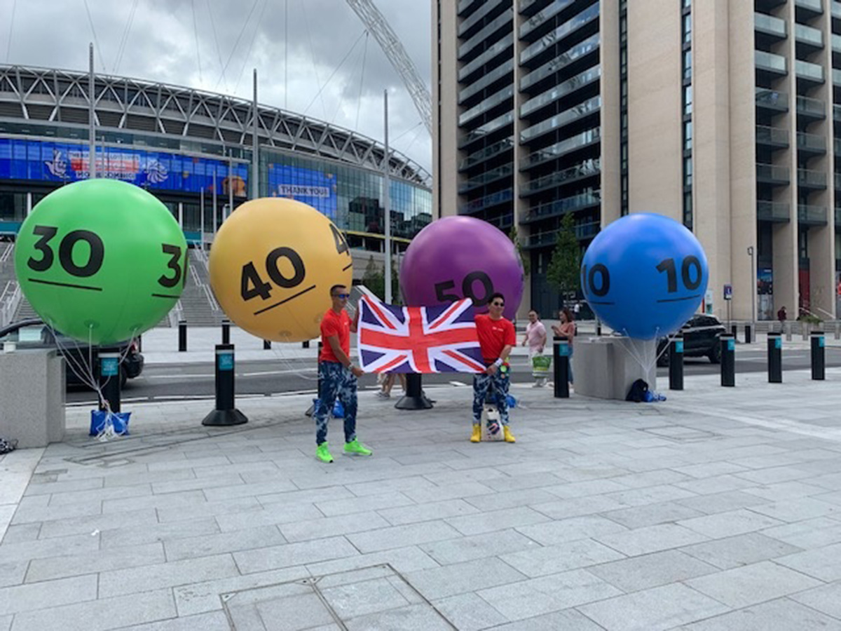 Categories: General Posted: Monday, 16 August 2021 Olympic athletes homecoming This weekend we have been at Wembley Arena for the Olympic athletes homecoming concert. With a crowd of 8000 in the arena, the National Lottery sponsoring the event wanted to have some 2m diameter helium filled lottery balls lining the Olympic Way, Arena Square and Market Square. Due to the strong winds we had to fly these spheres at low heights- between 2m and 5m from ground level, and with the general public in close proximity, constant supervision by our Imagine team is a must. https://www.youtube.com/watch?v=G73q4A-efmU Send Enquiry