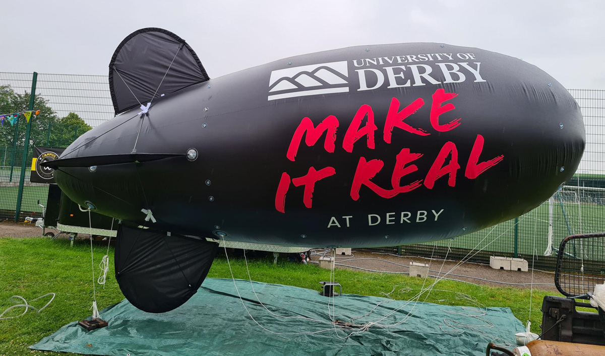 Categories: General Posted: Monday, 5 July 2021 Universities are back! Finally the universities are starting to open their campuses to prospective students and so on Saturday we installed Derby University’s blimp for them at their first event. Send Enquiry