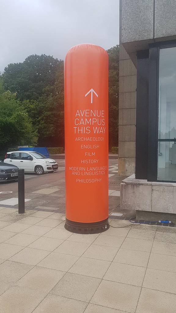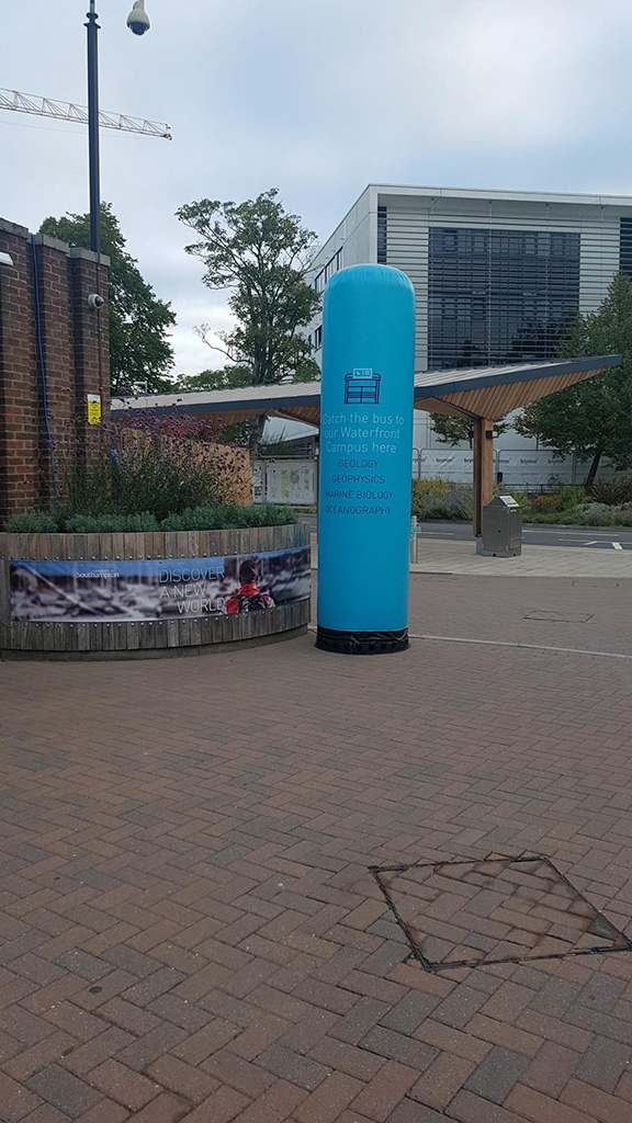 We recently installed some helium filled spheres and cold air filled inflatable columns for the University of Southampton for their 2018 open days.