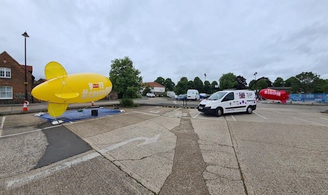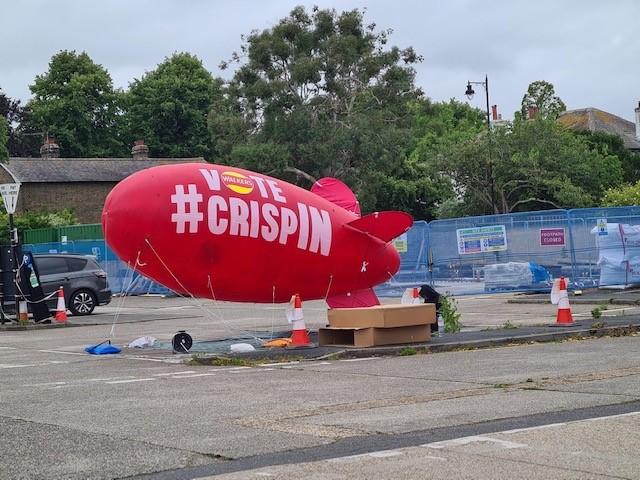 We were approached to create the blimps for the Crisp in and Crisp out campaign for Walkers. we made these pantone matched blimps each with a different slogan. They were flown about Sandwich in Kent. Gary Lineker even made an appearance himself.