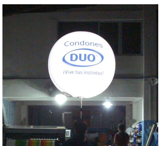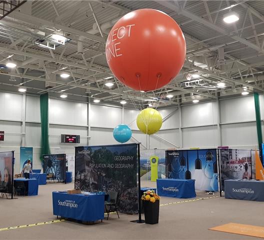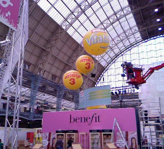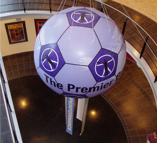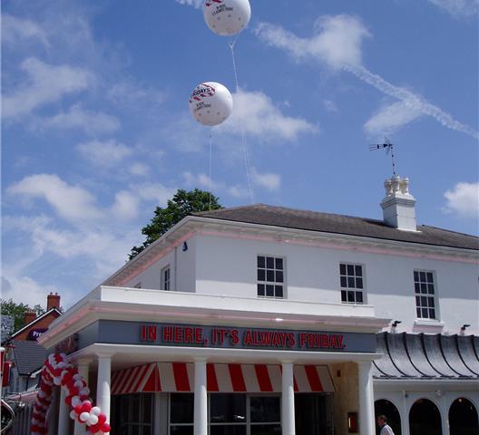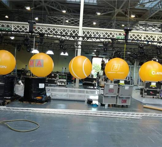 We can offer spheres with a harness at the North or South pole so that they can be suspended with air or floating with helium. These spheres can have a simple logo to front and back or three positions or we can offer a full surface digital print that wraps around the sphere. We also supply the helium or fan and an operative where required.