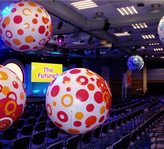 Imagine is one of the leading specialists in the design and manufacture of helium floating spheres. Spheres are ideal for indoor exhibitions, shows or outdoors in good weather. Spheres are also suitable for short promotional flight periods, such as music events, festivals, parades etc. Our Helium Spheres range in size from 5ft/150cm diameter upto 20ft/6m in diameter.